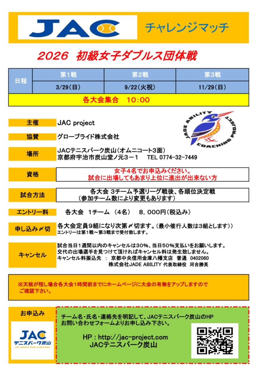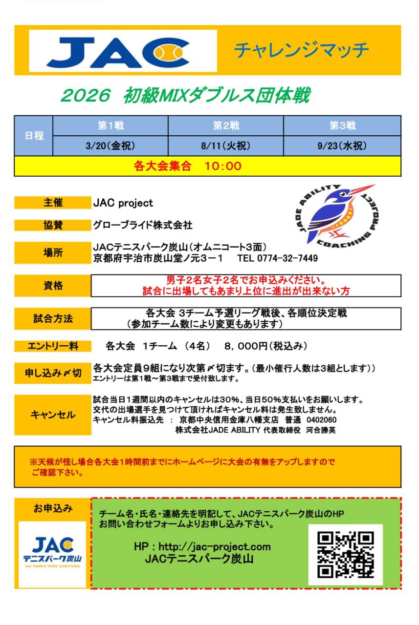宇治のテニススクールはJACテニスパーク炭山
