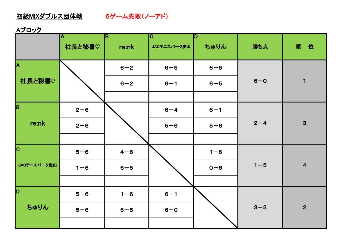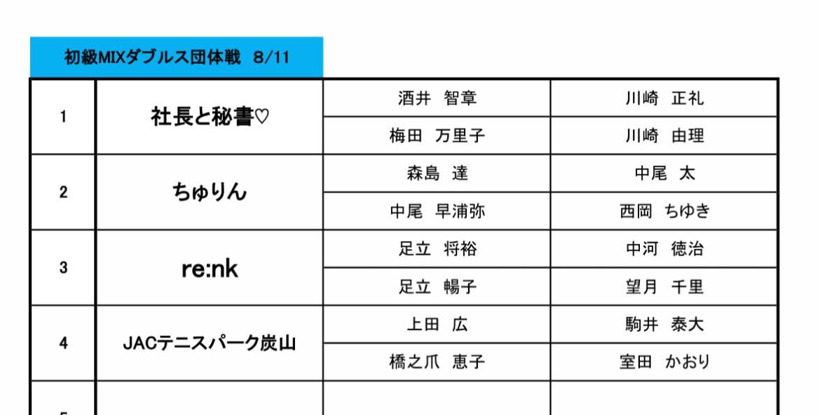 JACチャレンジマッチ初級MIX団体戦開催 2025/08/12 8月11日(月祝)JACチャレンジマッチ初級MIX団体戦が開催されました。 悪天候のため、参加は自己判断にお任せします、という事で8組エントリーがあった中、4組か大雨の中ご来場して頂き、名古屋から参戦の『社長と秘書🤍』チームが全勝優勝されました🏆 11時頃から奇跡的に雨も上がりアウトドアにて試合ができました!! 次回は、10月12日(日)に初級MIX団体戦を開催しますので、ぜひエントリーして下さい!!