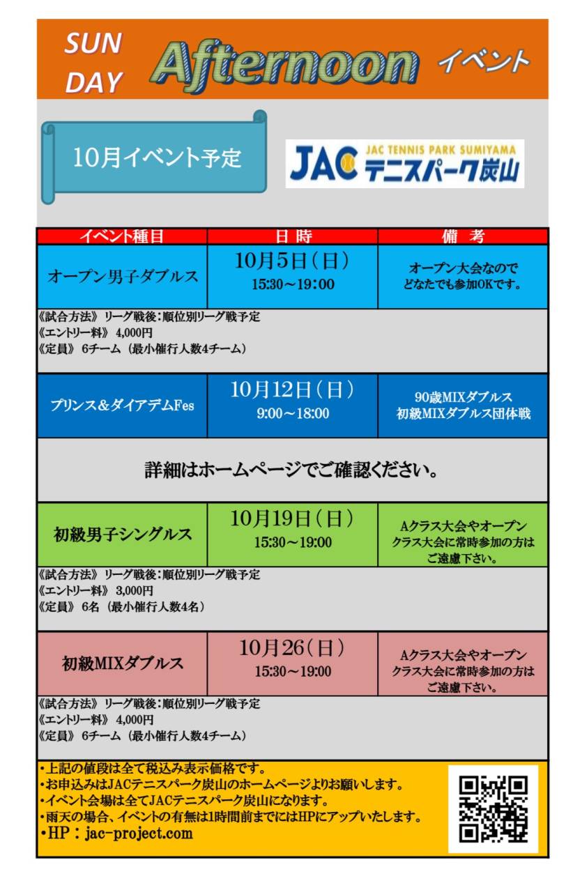 サンデーアフタヌーンイベントのご案内