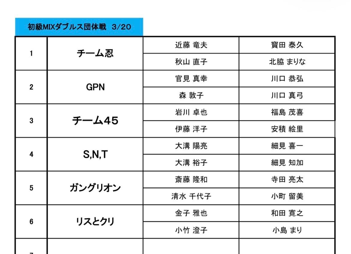 初級MIXダブルス団体戦