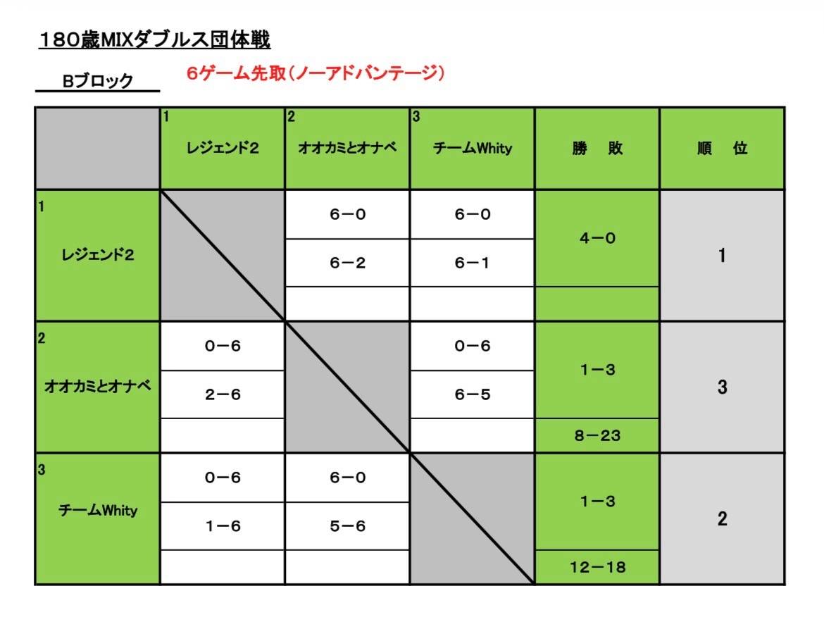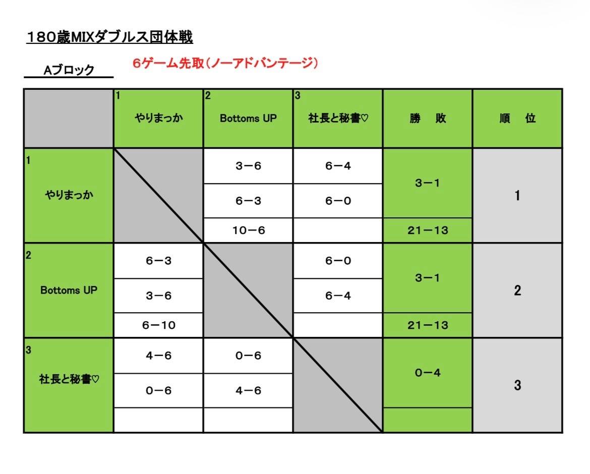 サンデーアフタヌーンイベント180歳以上MIXダブルス団体戦結果